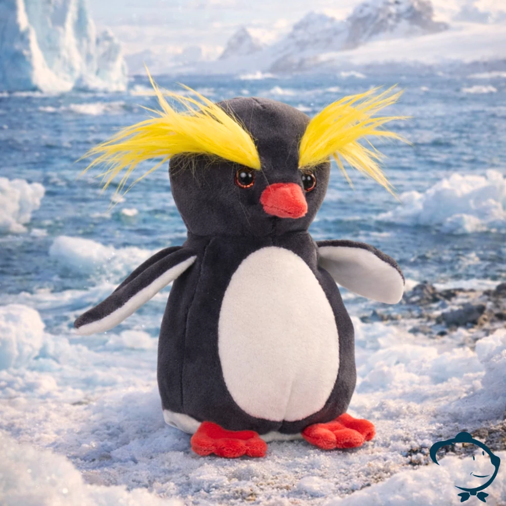 Crazy Crested, petit manchot gorfou de 15 cm, signé Barbara Bukowski, une création pensée pour les collectionneurs et les amoureux des animaux.
