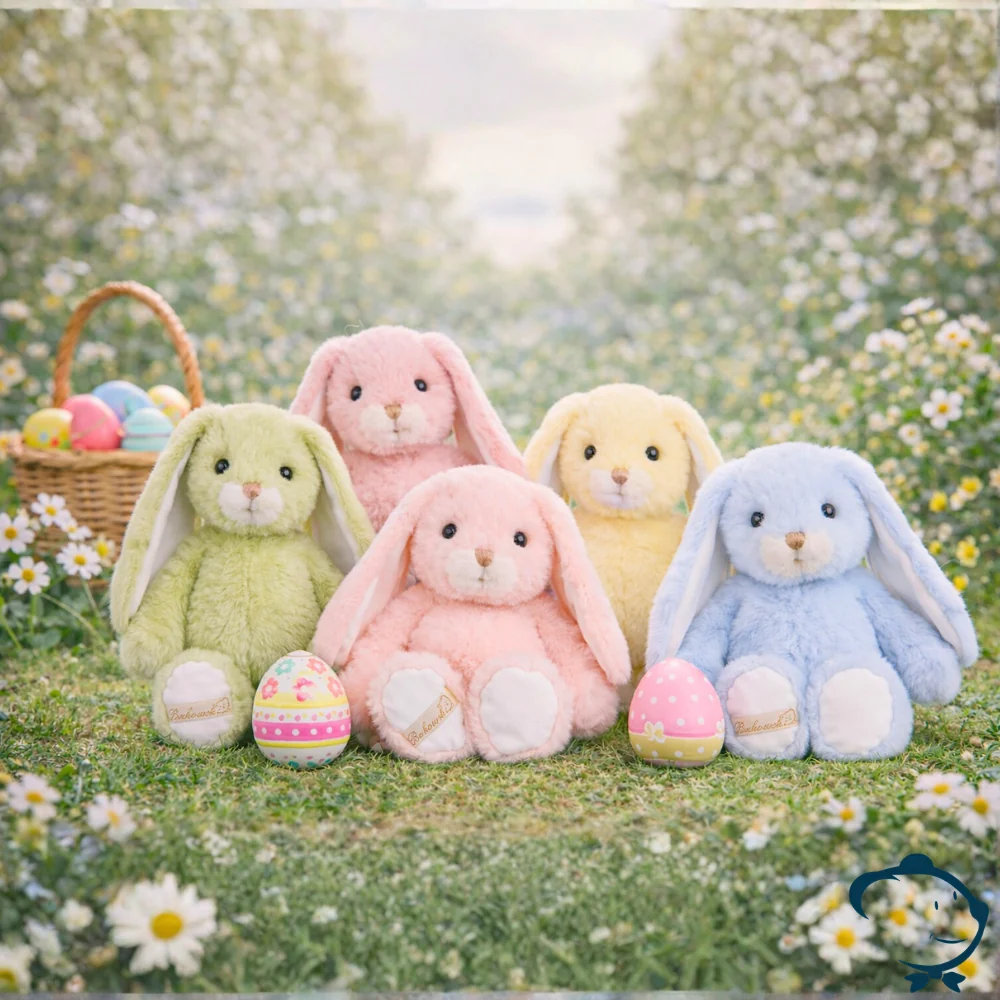 Finitions soignées : museau brodé et taillé à la main, longues oreilles souples à l’intérieur soyeux et pattes légèrement lestées.