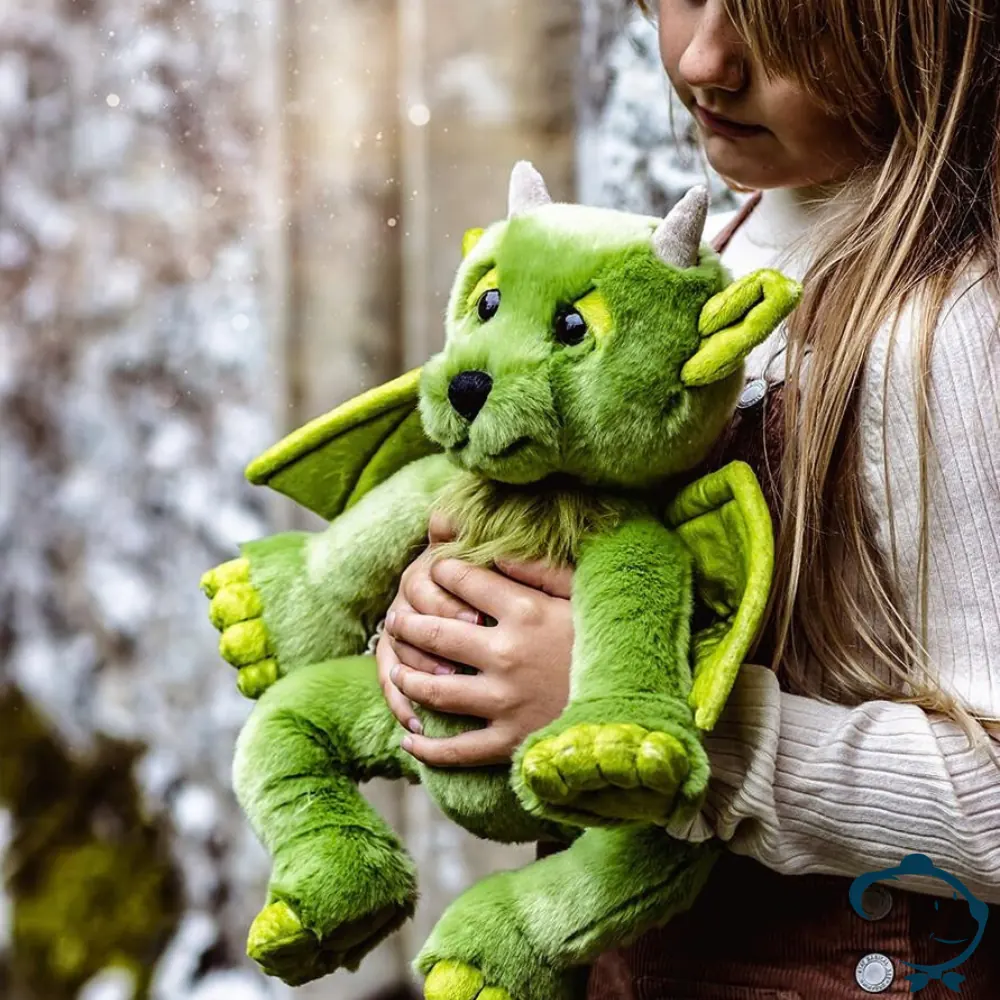 Matières haut de gamme : fourrure en plush verte luxuriante, d’une douceur incomparable, moelleuse et réconfortante, idéale pour les câlins comme pour les aventures imaginaires.